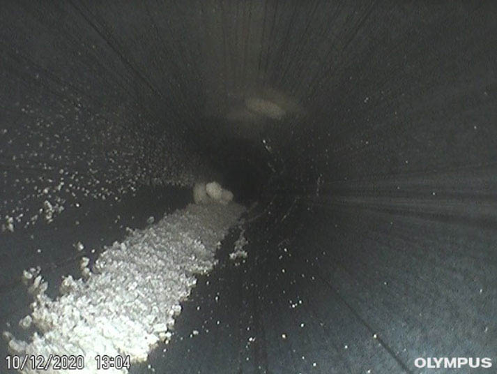 2) Deteksi residu setelah pembersihan antar batch dan pergantian antar produk. Pengelasan dan permukaan di dalam pipa proses tidak boleh mengganggu aliran produk yang melewatinya. Jika ada residu atau kotoran tersangkut, itu dapat merusak atau mencemari produk yang mengalir kemudian. Las, siku dan sambungan dalam pipa adalah zona masalah utama untuk penumpukan residu.
